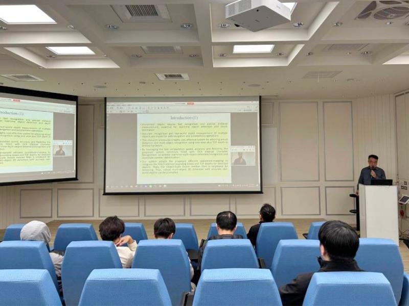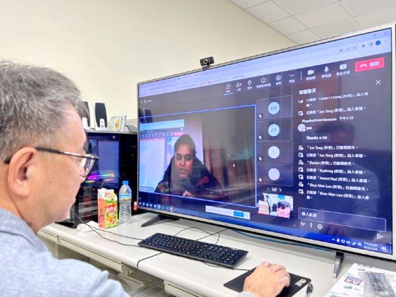 圖6:資工系博士生張乾益於韓國大邱舉行的ICOT 2023學術會議遠距視訊發表論文。