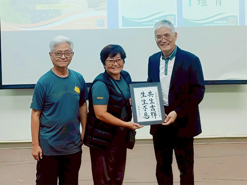 台灣登山教育推展協會杜麗芳理事長也出席與會,特別感謝南華大學攜手合作,共同推動戶外探索與山林安全教育,並表示,協會預計在全台辦理22場戶外教育論壇,選擇南華大學作為首站,意義深遠。高俊雄校長亦於開幕式中,致贈親書墨寶《共生吉祥 生生不息》予台灣登山教育推展協會,象徵對該協會及杜理事長伉儷推動登山安全教育的肯定與祝福,期盼未來能持續深耕戶外教育,推動永續發展。