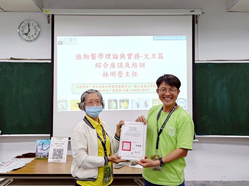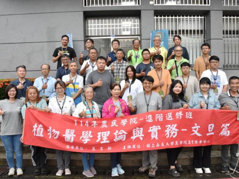 嘉義大學農業推廣中心與植物醫學系7月8日至9日聯合舉辦「植物醫學理論與實務-文旦篇」農民學院進階選修課程,吸引來自全臺主要文旦產區共26位學員參訓,儘管受丹娜絲颱風影響,課程壓縮為兩天密集進行,仍順利完成訓練,學員對課程內容與安排反應熱烈,收穫豐富,紛紛表示「不虛此行」。