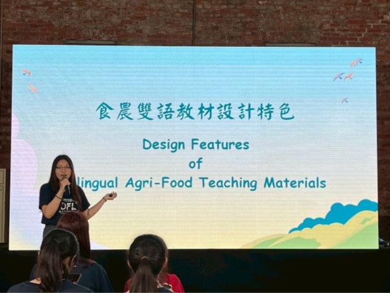 圖5:外語系林約杏介紹食農雙語教材設計特色。