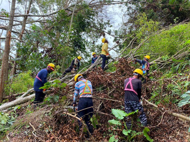 圖1:總務處外勤人員胼手胝足清理倒木、修剪斷枝。