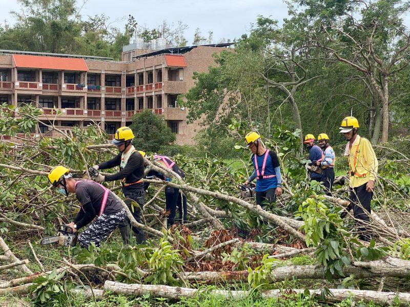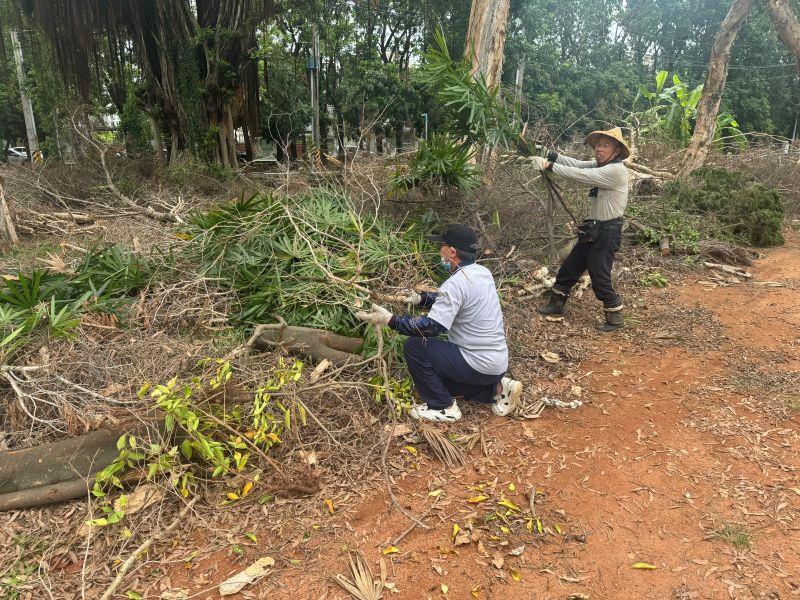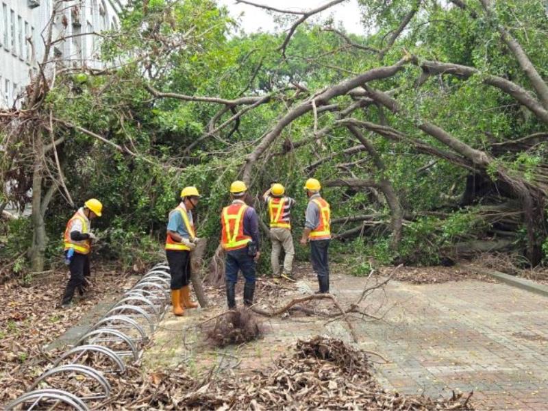 圖2:風災過後總務處同仁不斷地在校園各角落奮戰。