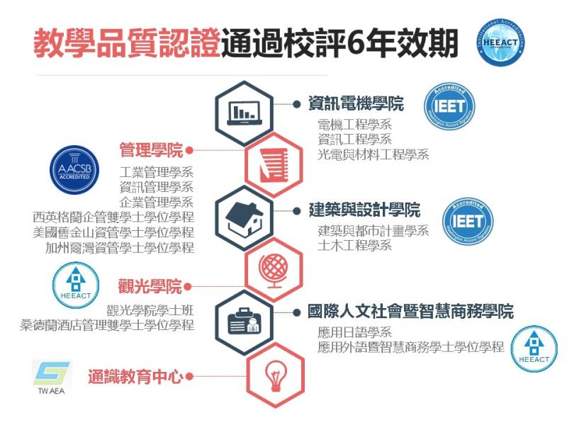 中華大學全校教學單位皆通過國內外教學品質認證的肯定,展現卓越辦學成效與國際接軌實力。