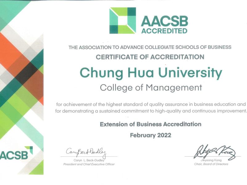 AACSB是國際性商管教育認證組織,故持有中華大學管理學院之學分與學歷,將可通行全球,提高就業機會。