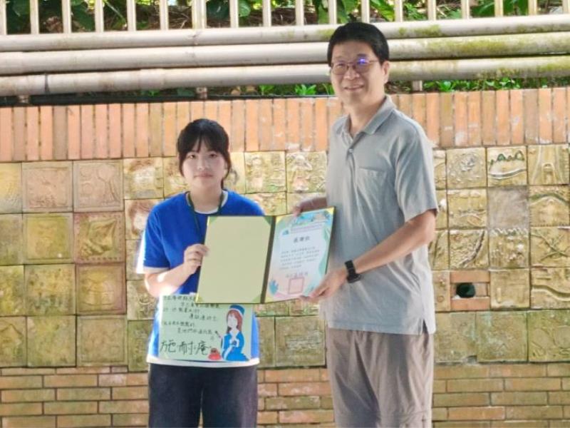 圖2:活動總召施雅文同學頒發感謝狀給龍山國小翁瑞隆校長。