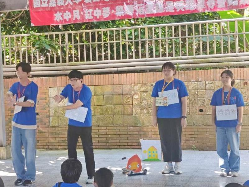 活動總召施雅文同學表示,這次營隊主題為?水中月,紅中夢,繁華落盡誰是英雄!?,透過生動有趣的方式,引導學童了解中國三大名著-紅樓夢、西遊記、水滸傳及其他經典故事,提升小朋友對文學的興趣,並培養基礎閱讀能力。透過遊戲、戲劇、手作等互動活動,讓學童在輕鬆愉快的氛圍中了解古人生活,使學習不再只是課本上的知識,而是能夠實際參與和體驗的過程。活動內容亦包含團康遊戲,例如:互動遊戲、報到遊戲、大地遊戲、童玩時光及美宣時間等。食農教育教學以竹崎地區常見的鄉土植物有機愛玉及艾草,教導小朋友搓愛玉及艾草蚊香製作,午餐製作則教導小朋友做飯糰與搓湯圓,同時宣導「產地到餐桌」概念,提倡使用在地、新鮮、健康的食材,支持在地農業和減少環境負擔。