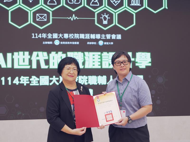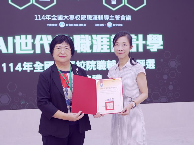 教育部青年發展署辦理「大專校院職涯輔導成果評選」,從全國大專校院中,依職涯輔導工作的質量、效益與推廣性進行評選,並表揚持續從事職涯輔導兩年以上的教師與行政人員。