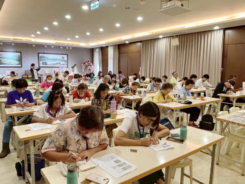 南華大學辦理「淨零綠生活X平安手作」活動,教導學員以禪繞畫手作祈福袋。