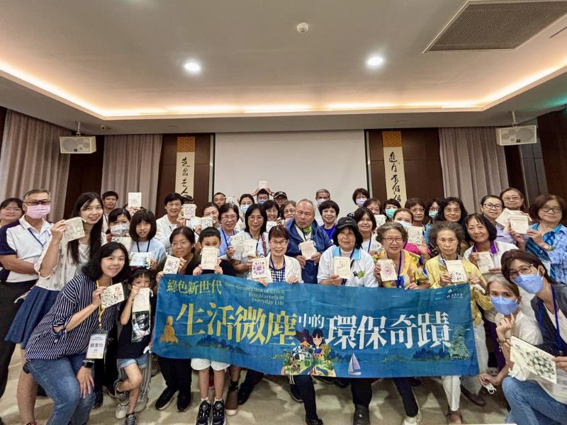南華大學辦理「淨零綠生活X平安手作」活動,邀請馬淑錦老師進行專題講座,並與學員在生活微塵中的環保奇蹟常設展合影留念。