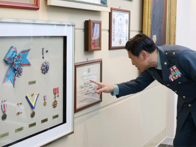 圖6:陸軍官校貴賓參觀蕭萬長前副總統捐贈的各項文物。