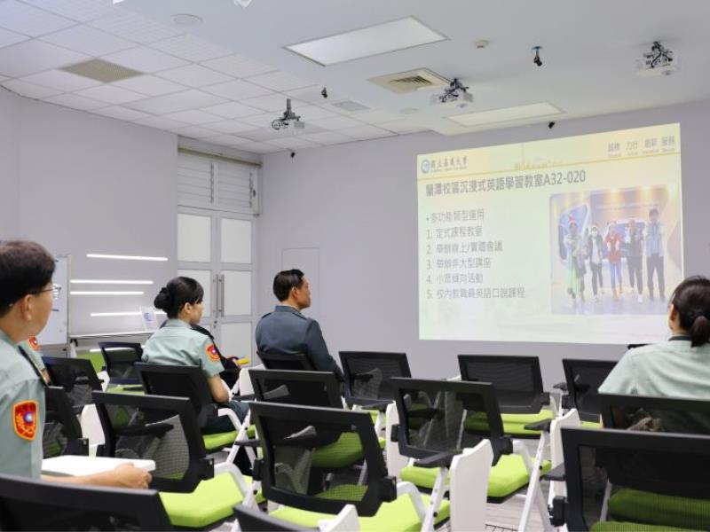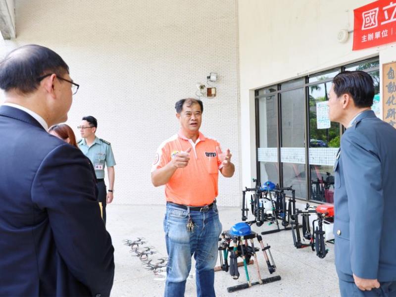 簽約儀式後,譚芳榮校長一行參觀圖書資訊館與語言中心,對圖書館內蕭萬長前副總統文物館內珍藏各種國際交流物品、語言中心模擬真實情境的沉浸式英語學習教室留下深刻印象。黃文祿老師也特別介紹嘉大為南部唯一無人機考照培訓基地,未來軍校學生若取得相關證照,將進一步強化國防科技的競爭優勢。