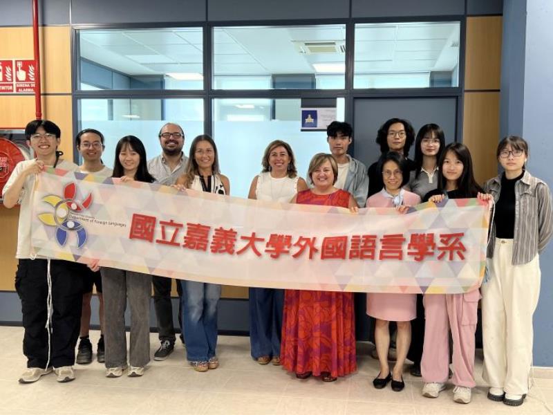 嘉義大學外國語言學系鄭斐文主任執行教育部高教深耕「教師教學與學生學習國際交流」計畫,9月9日至20日率領8位外語系學生前往西班牙Jaume I大學英文系,進行為期12天的學術與文化交流活動。此次出訪不僅是兩校間首次實體互訪,更是深化雙邊未來合作關係的重要契機。