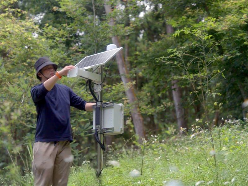 ▲部署於國立宜蘭大學大礁溪林場的感測節點,能24小時即時監測煙霧、溫濕度等森林環境參數,並透過Hestia NTN衛星通訊物聯網裝置回傳資料至雲端平台。