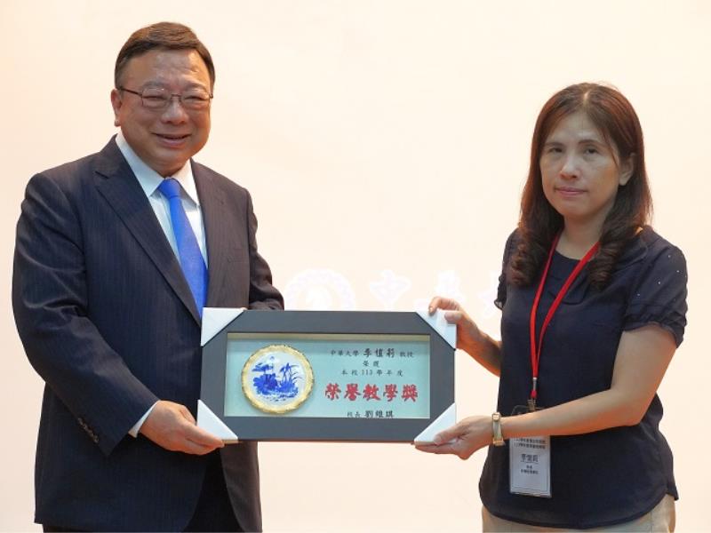 ▲財務管理學系李愷莉教授(右)榮獲「113學年度榮譽教學獎」殊榮,展現教學熱忱與持續精進精神。