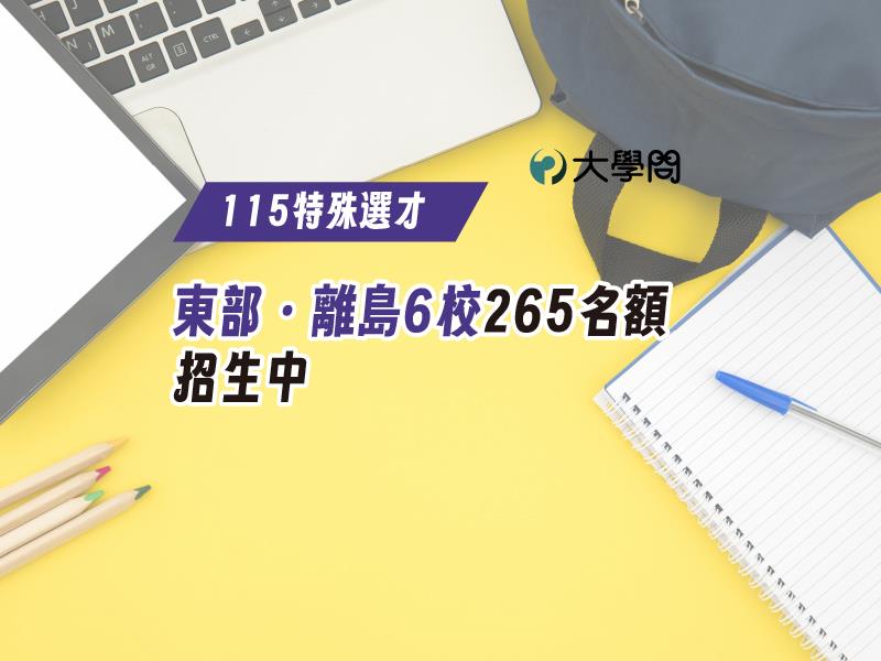 東部及離島今年有6所大學100系組,共提供265個名額。包括東華、臺東、宜蘭、金門等4所國立大學,以及慈濟大學、佛光大學。★【115特殊選才】東部.離島6校265名額,招生中