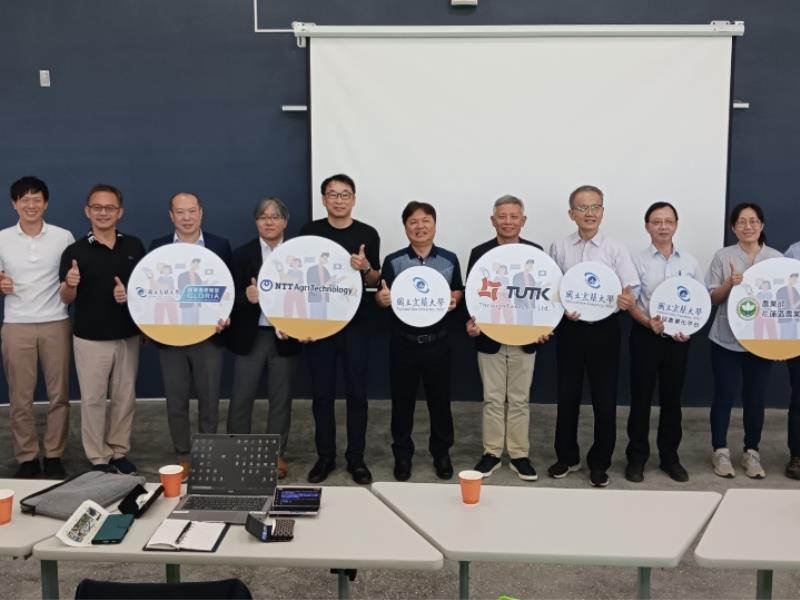 ▲宜蘭大學陳威戎校長(右六)、NTT農業科技酒井大雅社長(右七)、物聯智慧郭啟銘董事長(右五)與農業部花蓮區農業改良場蘭陽分場專家等人合照