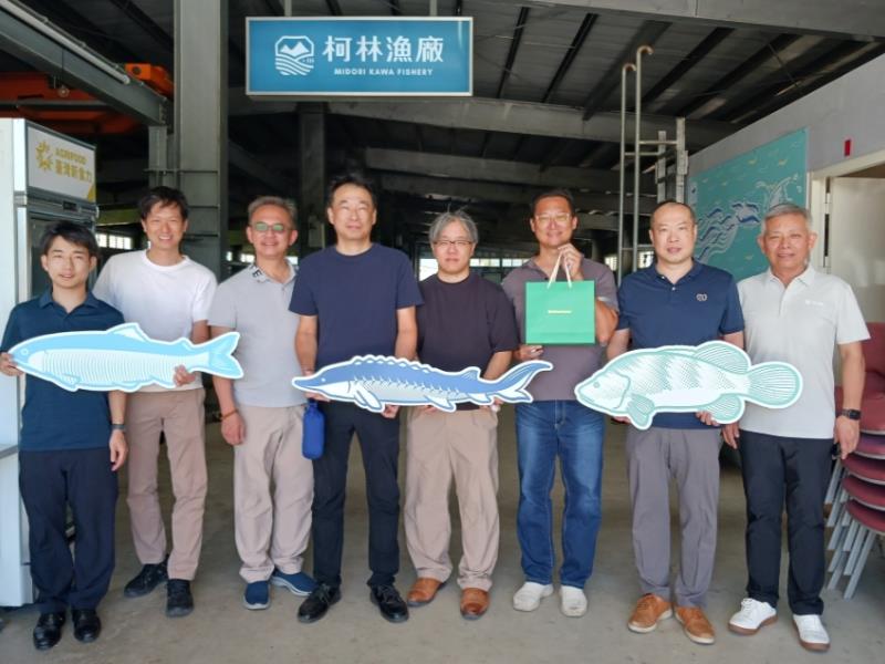 ▲宜蘭大學花國鋒研發長(右二)陪同貴賓參訪特色農業旅遊場域柯林漁廠