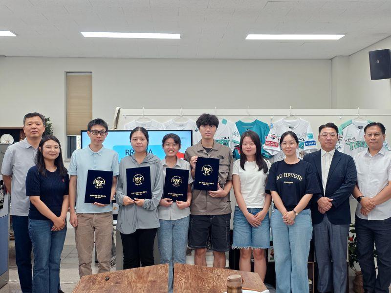 圖3:嘉大4位學生拿到實習証書與韓國順天灣RRC-EA工作人員合影。