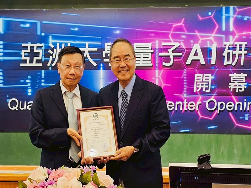 亞洲大學「量子AI研究中心」(Quantum AI Research Center)10日揭牌,邀請中央研究院院士、國際知名量子科學專家王康隆講座教授擔任榮譽主任。