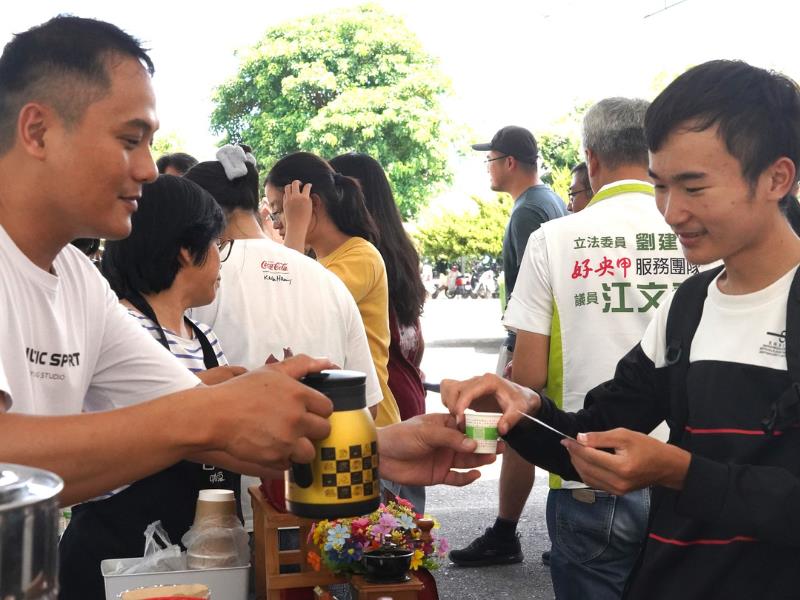 南華大學舉辦「咖啡神在雲林」慢食系列活動,民眾於慢食地球市集現場品嚐咖啡,也支持在地小農,落實慢食精神。