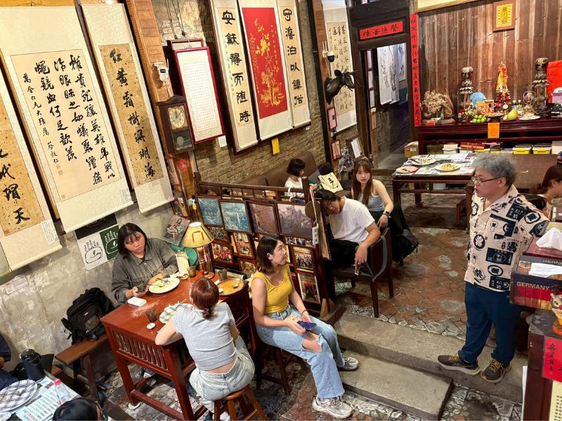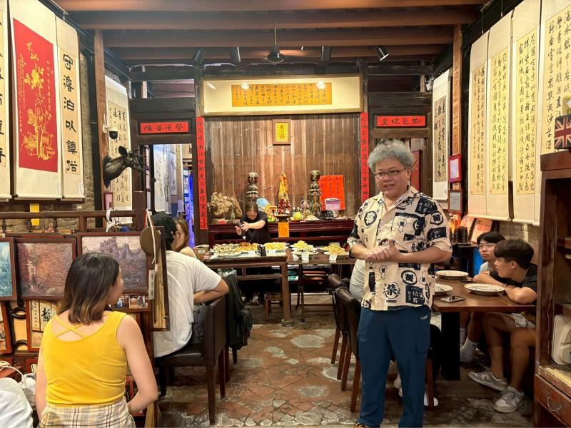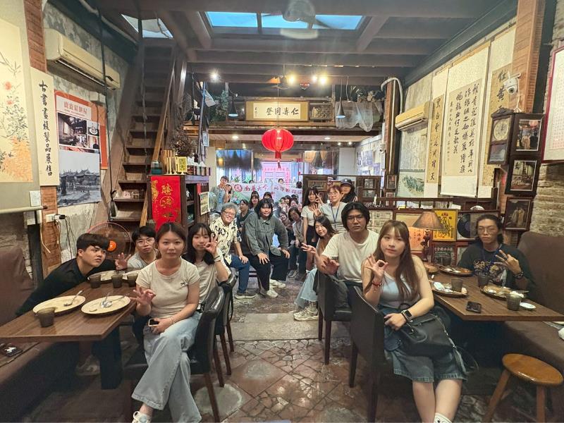 此行亦參訪深具地方特色的文創餐飲品牌「鹿鹿鬆餅屋」,該品牌由年輕創業者林裕柏負責人創辦。以老屋洋食古民家為核心主軸,並以修復老屋為基礎,結合日式洋食文化,打造出充滿溫度與設計感的老宅用餐空間,成為鹿港旅遊與在地青年創業的代表之一。林裕柏負責人親自接待南華大學師生,除了導覽整個餐廳環境,介紹建築修繕過程與空間規劃理念外,也細膩分享自己從發想到經營的過程,包括資金籌措、市場定位、品牌經營到顧客經驗設計等面向。林裕柏強調:「現階段所學的專業並不一定會成為未來職涯發展的唯一方向,建議同學們保持開放的態度,嘗試多元的學習與探索,培養跨領域的能力,才能在未來有更多發展與選擇的可能性。」