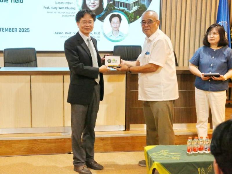 簽約後,布勞爪哇大學農學院安排Guest Lecture講座,演講主題為:「Plant Physiology and Nano Biotechnology for Climate-Resilient Agriculture」,嘉大農生系何一正主任與莊慧文教授受邀擔任主講人,兩位教授分別從植物生理學的觀點以及奈米技術的應用,深入探討農業在面對氣候變遷與環境壓力下,如何透過科學方法提升作物生產力與永續性。講座中不僅分享了最新研究成果與技術發展,也為在場師生提供了未來研究方向的啟發與思考。現場共有約200位師生參與,全程互動熱烈,師生踴躍討論,最終獲得與會者一致的肯定與高度評價,展現嘉大教師在國際學術交流上的專業實力與影響力。