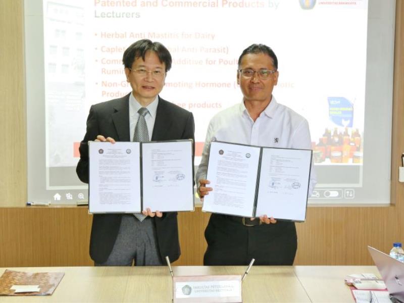 圖8:嘉大農生系何一正主任(左)與印尼布勞爪哇大學動物科學院Prof. Halim Natsir簽署MOU。