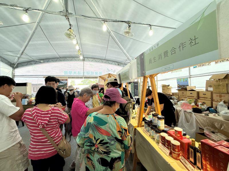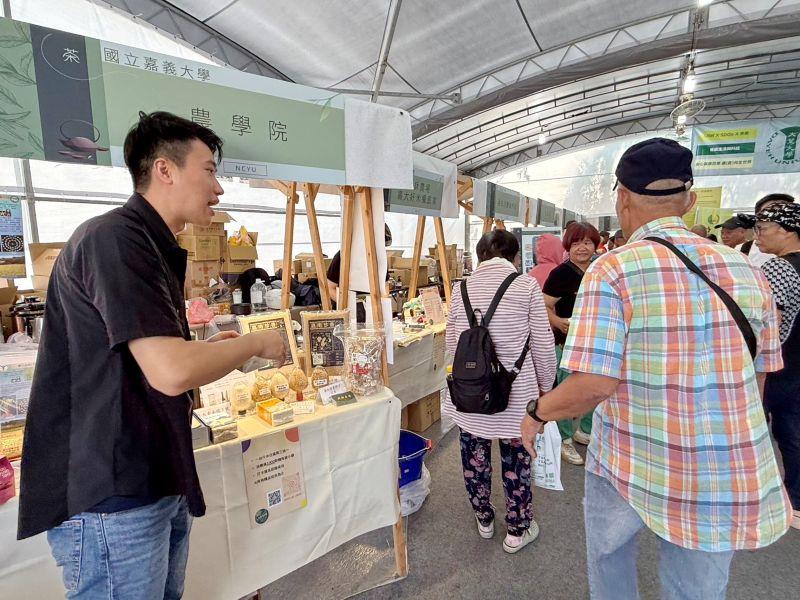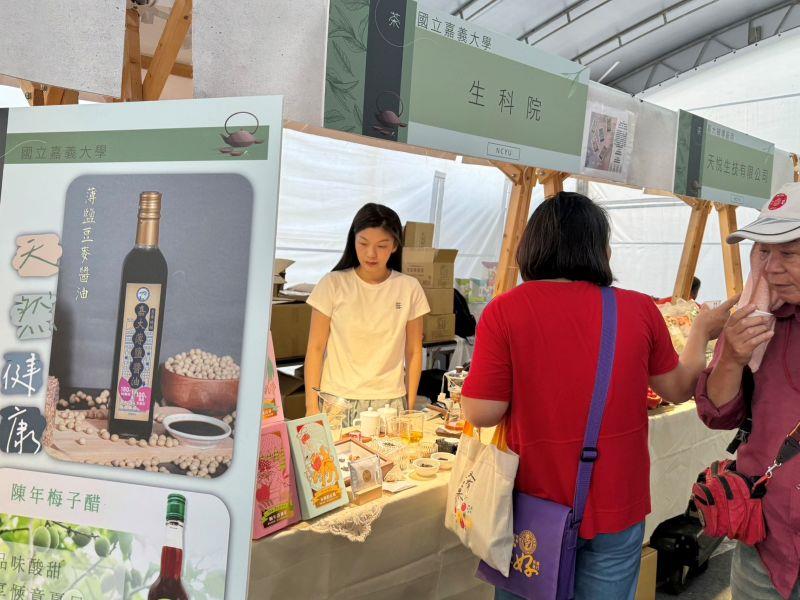 產品展售上,嘉大攜手技術移轉廠商與校內合作社,共同展現多元產學成果。天悅生技有限公司與農讚有限公司帶來健康養生的康普茶;大酉茶葉有限公司及順發製茶廠推出優質茶品;宬鉌農場則以「嘉大好米攏底家」品牌展現優質米食文化。此外,嘉大員生消費合作社也帶來薄鹽醬油、鮮奶方塊酥及調味花生等特色產品,充分體現嘉大從實驗室研發到商品化落地的完整產學鏈結。