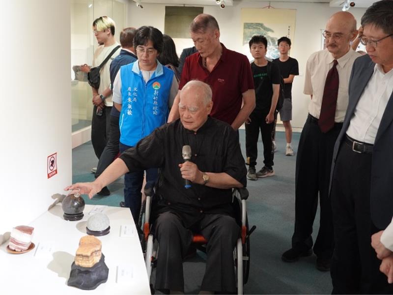 ▲洪錫銘先生特別展出罕見外太空隕石「天鐵」圓珠,展現多元文化之美,吸引眾人目光。