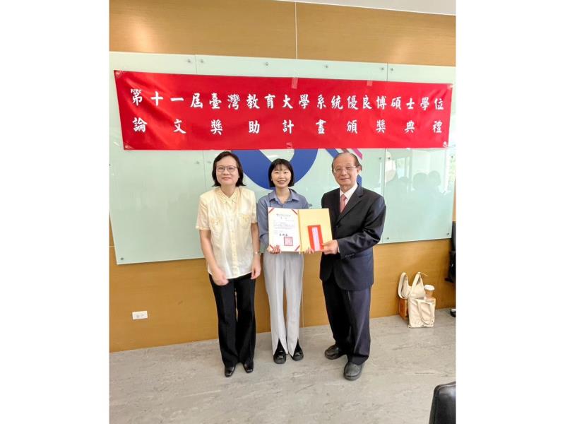 臺灣教育大學系統第11屆優良博碩士學位論文獎頒獎典禮10月9日於臺北市立大學博愛校區舉辦,由臺灣教育大學系統總校長吳清基博士親自頒獎。嘉義大學行銷與觀光管理學系行銷研究所應屆畢業生李雨軒在數百名申請者中脫穎而出,榮獲碩士論文優良獎,獲贈獎助學金1萬元,並與指導教授蕭至惠教授共同應邀出席頒獎典禮。