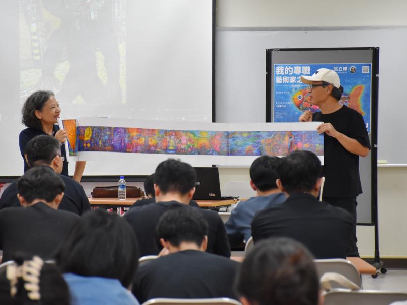 南華大學視覺藝術與設計學系主任羅雪容指出,此講座的舉辦,主要讓學生透過專職藝術家的第一手經驗,了解藝術創作背後的真實面貌,包括職涯發展的艱辛歷程、市場經營的挑戰與成就感的累積。同時也期望藉由與業界創作者的近距離互動,啟發學生對個人專業發展的深入思考,並探索如何將自身的興趣與所學結合,走出屬於自己的職涯方向。透過實務案例分享,讓學生在藝術創作與未來規劃之間建立具體連結,進一步強化其創意思維與自主學習能力。