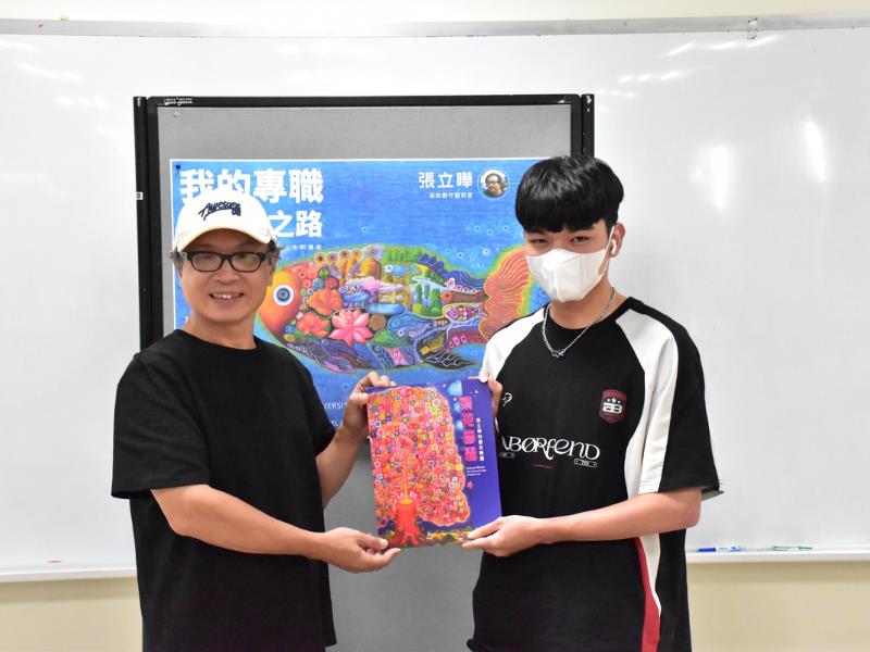 03南華大學視覺藝術與設計學系邀請藝術家張立曄蒞校演講,與學生互動並致贈禮物。