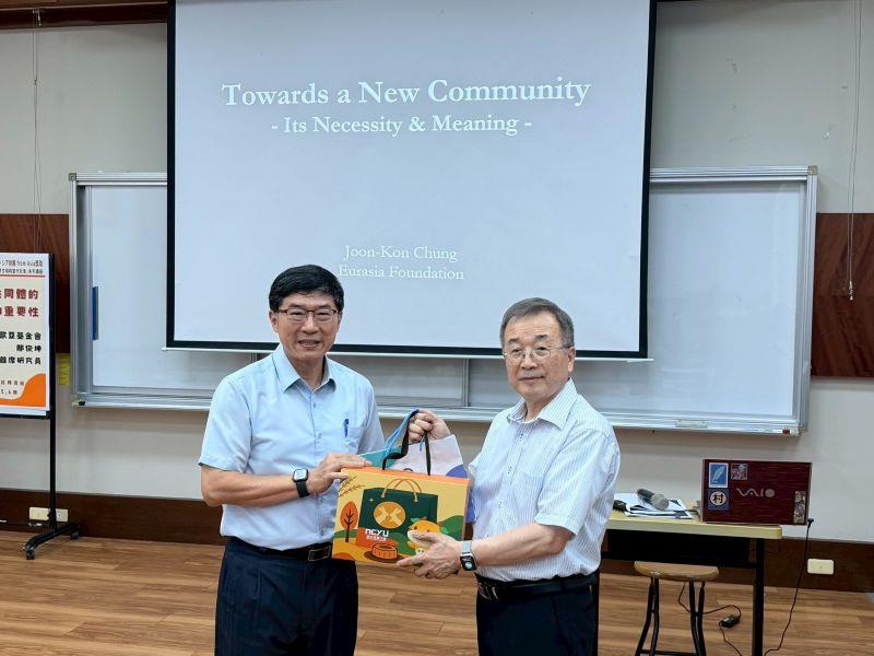 系列講座第五場10月14日在民雄校區教育館舉行,特別邀請歐亞基金會首席研究員鄭俊坤教授進行專題演講,主題為《邁向新共同體-其必要性與意義》。鄭教授長期關注國際和平與共同體發展,此次演講聚焦於他提出的「邁向新共同體(Towards a New Community )」理念,引發師生高度關注與深度思考。