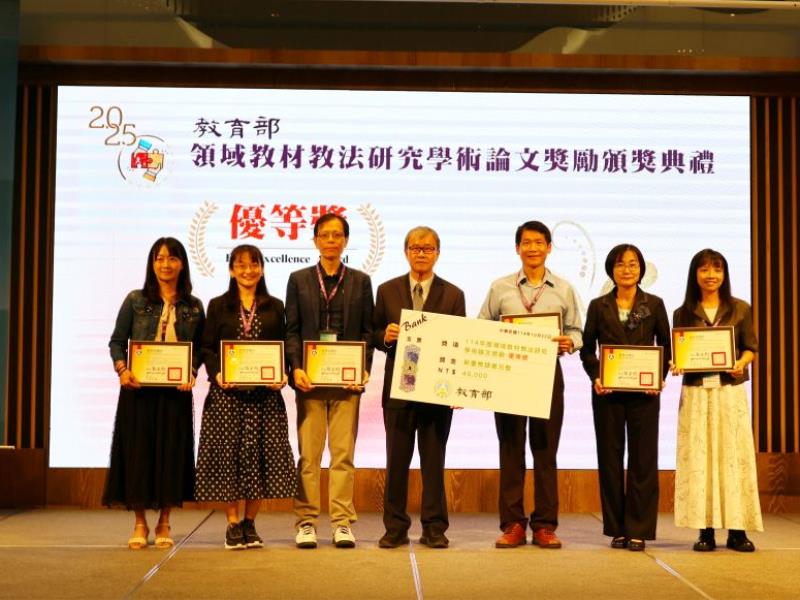 圖6:鄭英耀部長與榮獲「領域教材教法人才培育計畫論文獎勵」佳作獎教師合影。