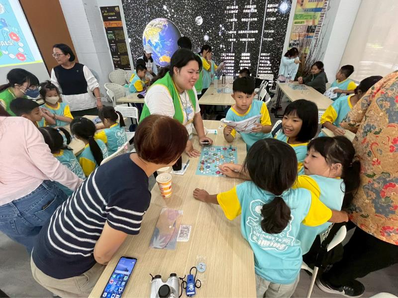 南華大學永續中心執行長蕭雅柏在活動中引導學生認識「地球暖化」以及「二氧化碳」對環境的影響。學童們透過儀器實測,對比了在樹木環繞的戶外空間與密閉教室中,二氧化碳濃度的差異,感受到人類活動對地球的影響,並思考如何在日常生活中落實的減碳行動,例如自備環保水壺、使用大眾交通工具、減少肉類消費等。更運用桌遊結合聯合國永續發展目標(SDGs),讓學生在遊戲中實際回答問題,藉以進一步理解聯合國永續發展目標(SDGs)的相關議題,並且能對這17項指標有更具體的理解。此次環境教育課程的安排,不僅將抽象的環境議題轉化為具體可感的學習體驗,更讓孩子們在互動過程中加深對防災與環境保護的認識。