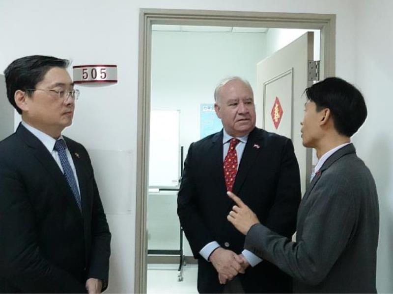 佛大趙涵?校長親自帶著巴拉圭大使參訪學生上課環境