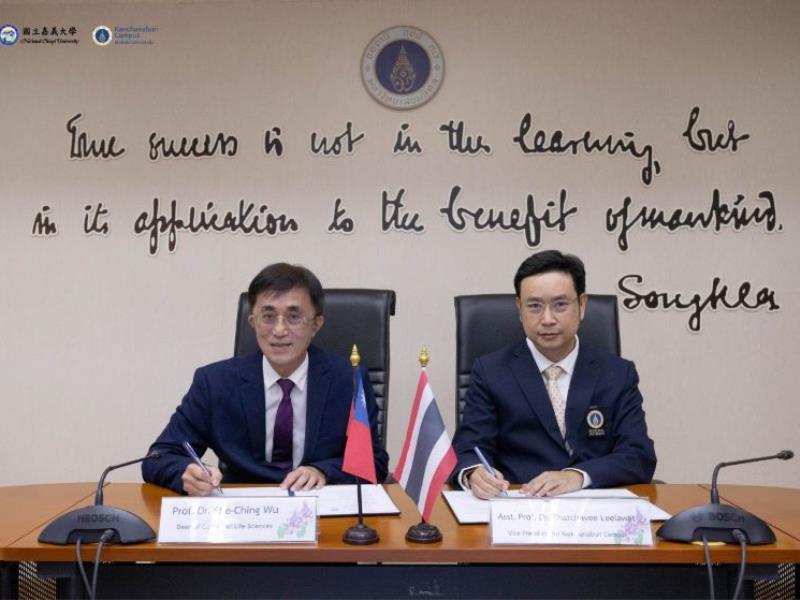 圖1:MUKAThatchavee Leelawat副校長(右)與嘉大生命科學院吳思敬院長簽署合作協議。