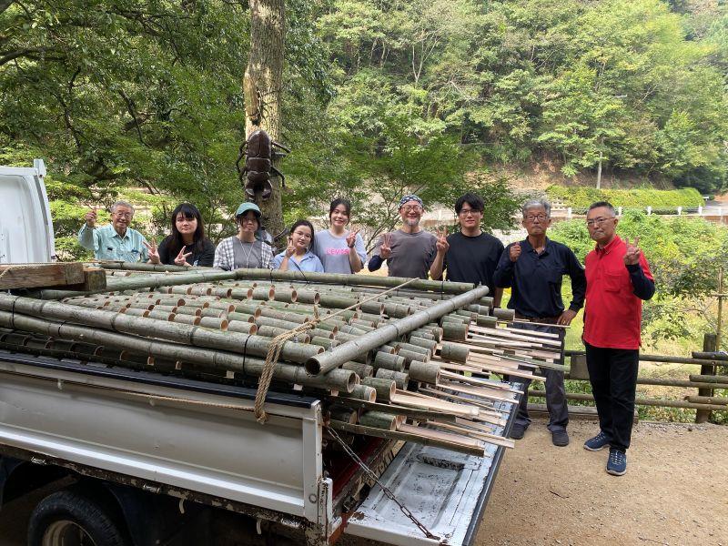 學生團隊以「新生」為題,創作出象徵臺日文化共融與生態守護精神的裝置藝術作品。作品運用愛媛在地竹材與森林景觀融合,展現對自然共生理念的體現;同時結合象徵良緣與祝福的御守繩結,融入當地文化色彩,寓意臺日兩地在藝術與文化上的深厚連結與美好緣分。