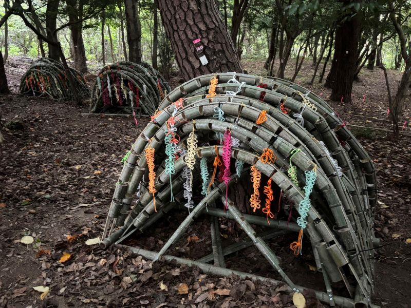 圖7:作品「新生」運用愛媛在地竹材與森林景觀融合,展現對自然共生理念的體現;同時結合象徵良緣與祝福的御守繩結,融入當地文化色彩,寓意台日兩地在藝術與文化上的深厚連結與美好緣分。