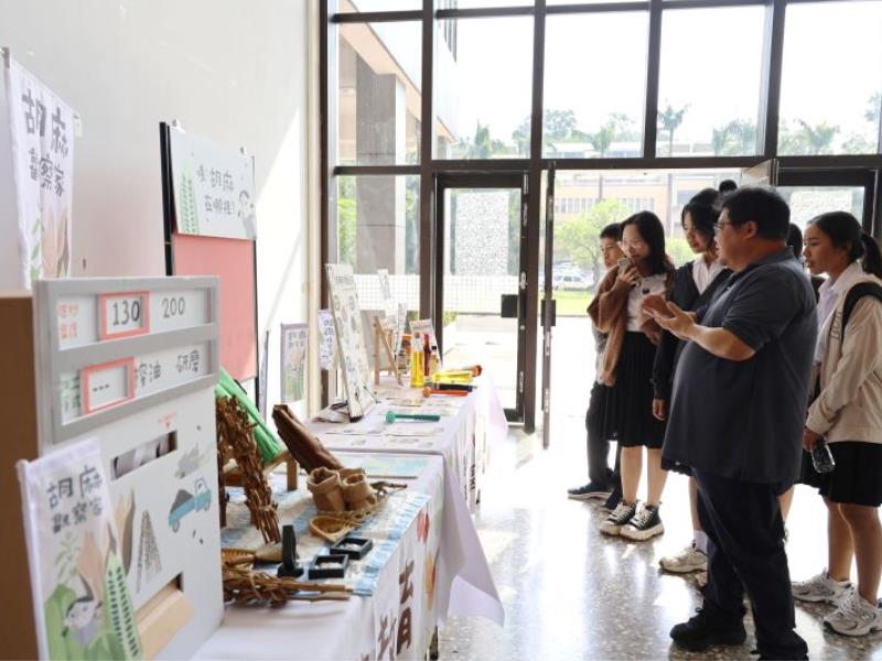 圖1:清邁大學交換生參觀臺南區農業改良場食農教育成果。
