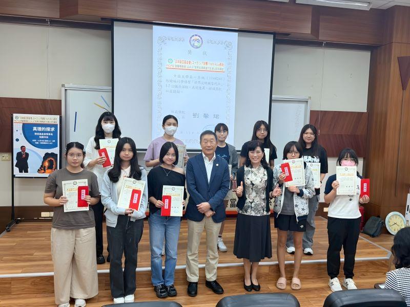 圖1:佐藤洋治理事長頒發獎項予10位學業表現優異的學生。