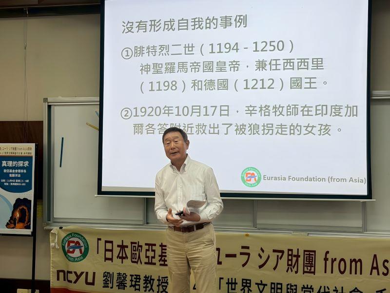 圖2:歐亞基金會理事長佐藤洋治蒞校分享「真理的探求」。