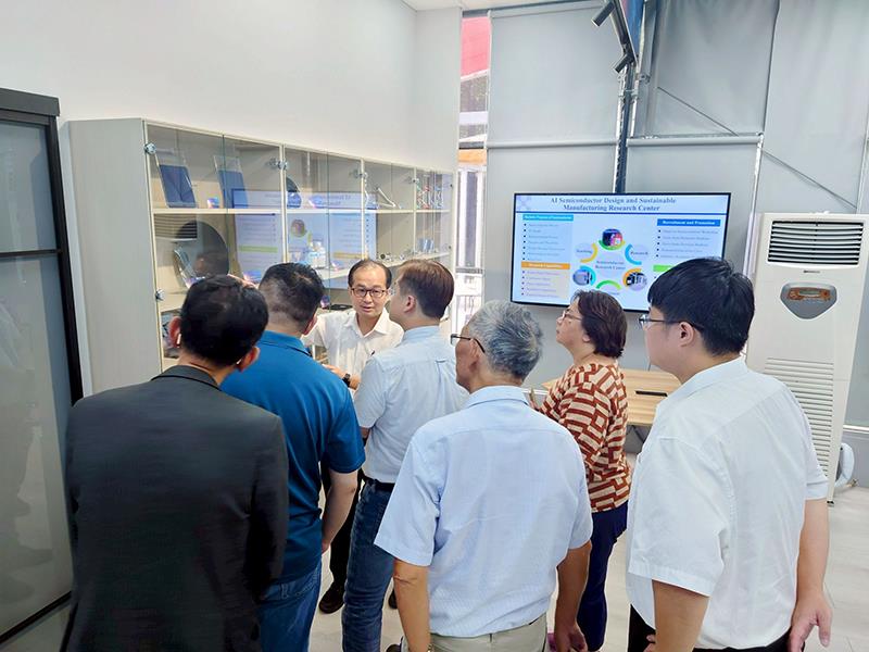 黃副校長不僅親自介紹關於亞大半導體學士學位學程課程應用與導入情境教學,更帶領師長解說半導體教學領域,半導體永續廣場以及製程實驗室等設施,讓該校師長能深入了解亞大在半導體教育推動與產學鏈結方面的成果。