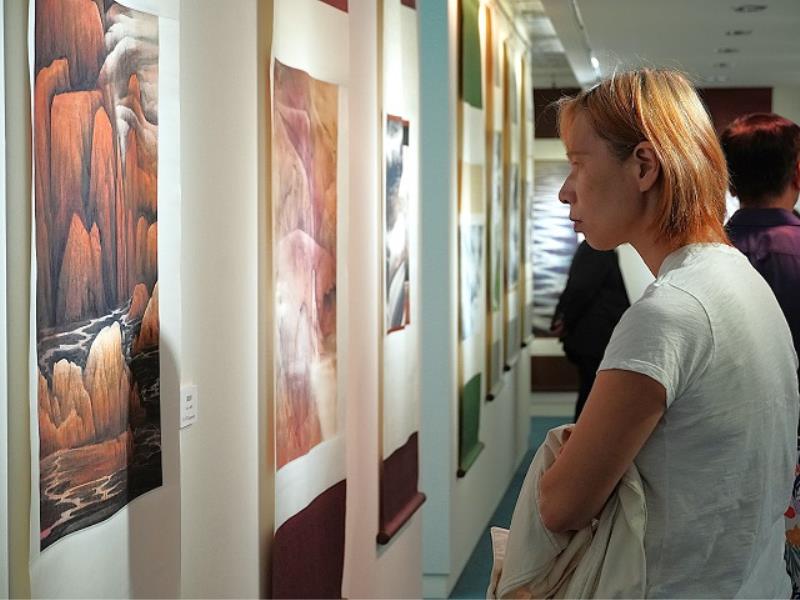 藝術家楊企霞表示,創作是一段孤獨卻豐盈的旅程,透過筆墨與釉彩,她將心靈的感動轉化為藝術語言。她感謝中華大學提供展出平台,讓她能與師生及社會大眾分享創作歷程,也期許自己持續在藝術與教育的道路上努力前行。楊教授近年足跡遍及黃山、太湖、美國大峽谷與敦煌等地,以現場寫生捕捉自然壯麗與心靈悸動,作品蘊含深刻的人文關懷與生命哲思。