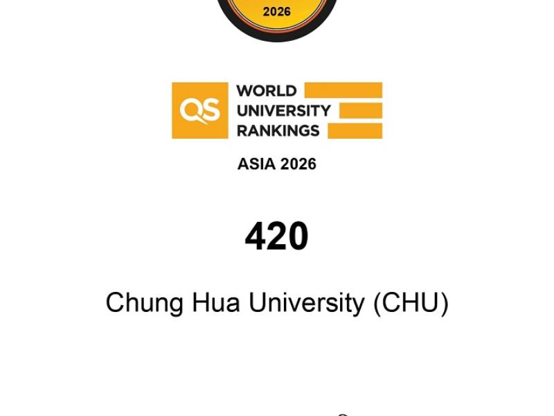 ▲中華大學榮獲2026 QS亞洲大學排名第420名,全台第30名、私立第13名,展現卓越教學品質與國際化發展成果。