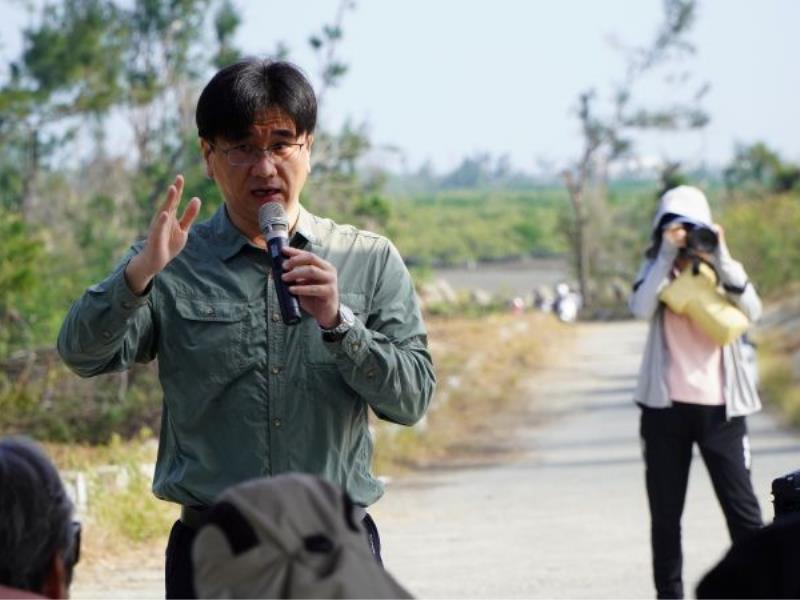 圖7:朱珊玟博士後研究員說明好美保安林之功能與在地場產業之關係。