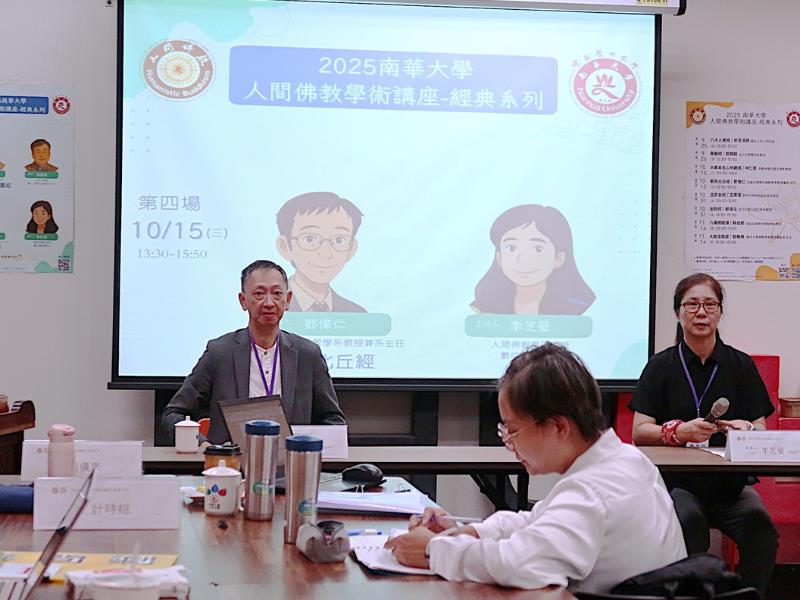 南華大學辦理「人間佛教學術講座經典系列」第四講,邀請法鼓文理學院佛教學系副教授兼系主任鄧偉仁(左)主講。