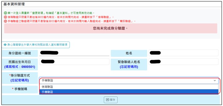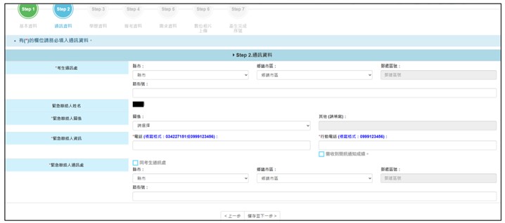 包括電話、e-mail等必填資料,如欲收到簡訊通知成績,請記得勾選「需收到簡訊通知成績」,完成後點選「儲存並下一步」。