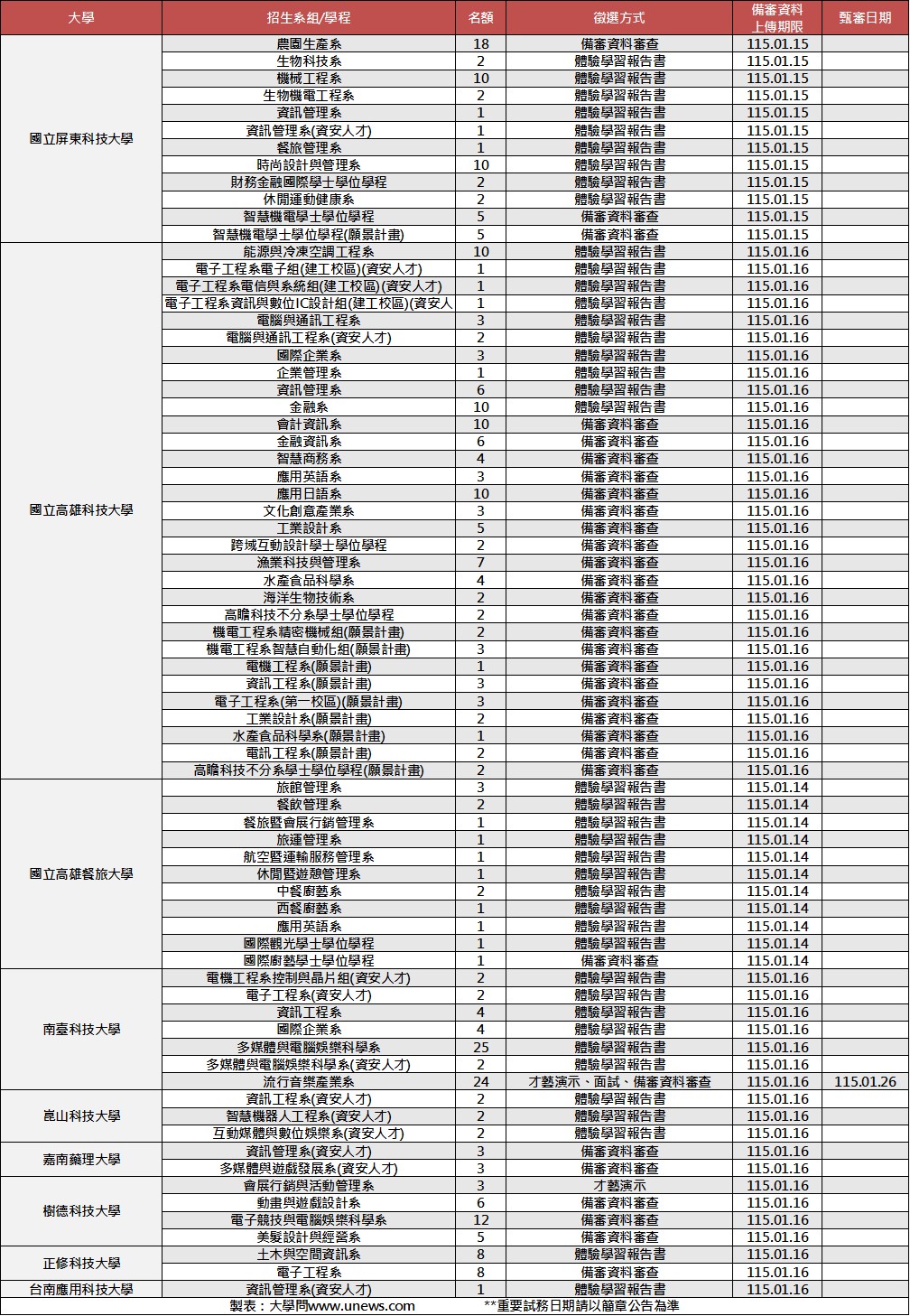 / 情報 / 技職考情 / 【115科大特殊選才】特才實驗教育組,260系組大公開
