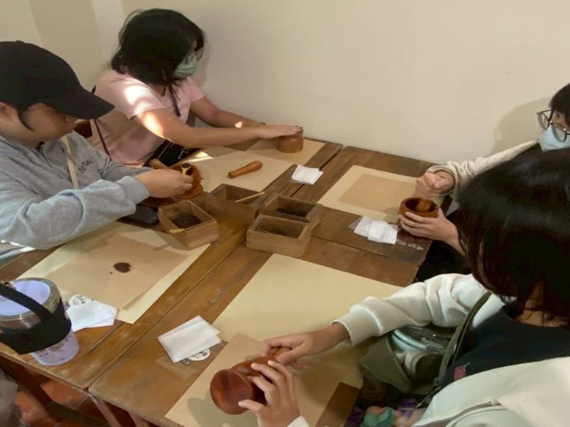 南華大學舉辦「大林慢遊趣」活動,於泰成中藥文物館體驗製作黑豆茶包。
